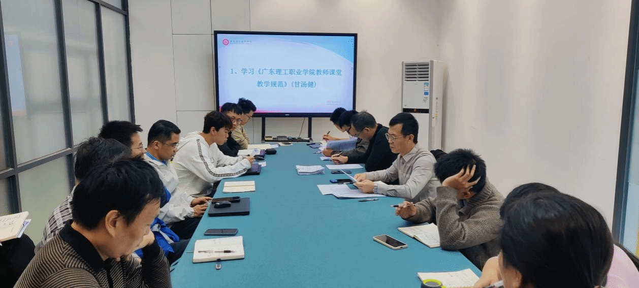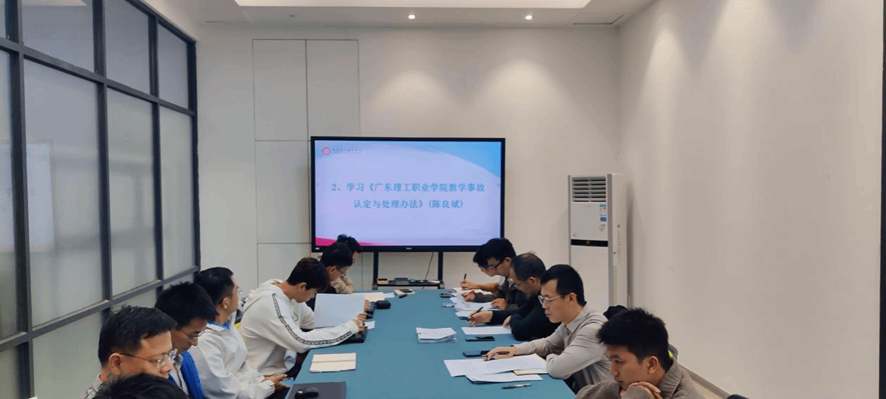 会上,甘汤健老师首先带领大家学习了《广东理工职业学院教师课堂教学规范(修订)》,重点解读了教师课前准备、课堂言行、教学组织、过程考核等环节的具体要求,强调了立德树人根本任务与课堂教学纪律。随后,陈良斌老师详细介绍了《广东理工职业学院教学事故认定与处理办法(修订)》,系统梳理了教学事故的等级分类、认定标准及处理程序,并结合实例警示全体教师须严守教学纪律红线,防范教学风险。