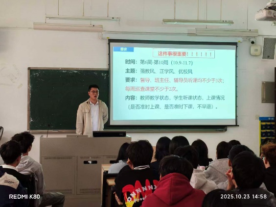 学院以发挥课堂主阵地作用为抓手,建立了“辅导员+班主任+学委”三级协同巡查机制,每周深入课堂开展巡课、听课不少于3次,重点督查学生到课、课堂纪律及手机使用情况。班级学委严格执行每日考勤上报制度,对旷课学生实施“警示谈话与关怀辅导”双轨管理。