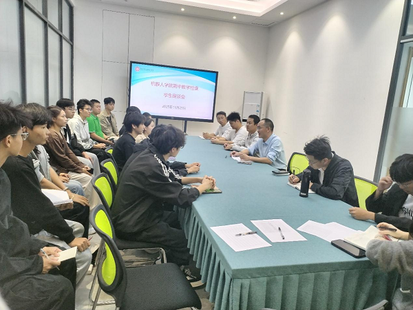11月25日,机器人学院召开2025年秋季学期期中教学检查学生座谈会,倾听学生心声 共促教学提升。会议由副院长乐有树主持,教师代表、各班级学生代表、教学秘书等参会。