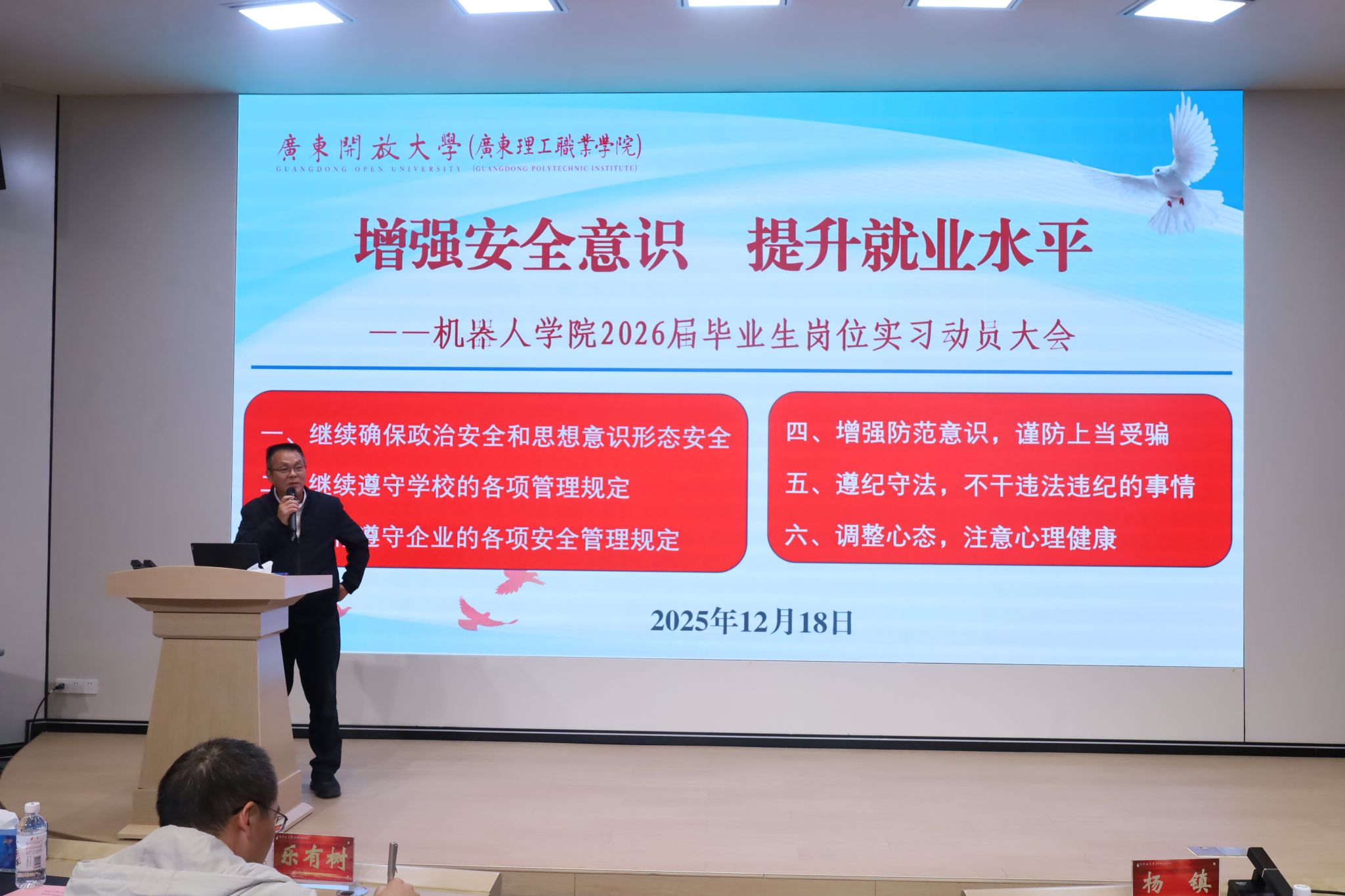 12月18日下午,机器人学院举行2026届毕业生岗位实习动员大会。学院党政领导、全体指导老师、全体辅导员以及2026届全体毕业生参加。